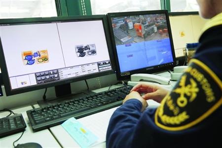 當快件、包裹到達傳送線上時,通過條碼掃描系統對快件、包裹進行數據掃描,進入X光安檢設備對包裹進行百分之百全部查驗。將檢查圖像傳送至遠程判圖室,系統對海關布控貨物自動進入查驗室,其他包裹通過自動判圖與人工判圖相結合,找出嫌疑行李,通過即時查驗方式將查驗指令下達至系統,由系統做出自動分揀流程,將包裹輸送至查驗室供海關進行現場開箱查驗。